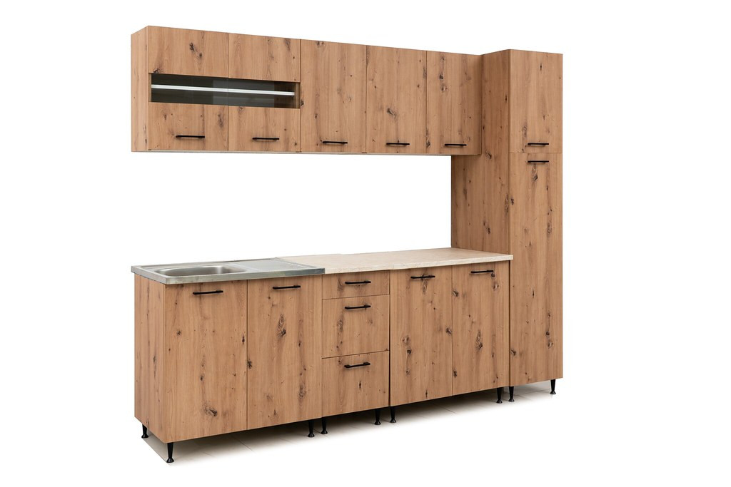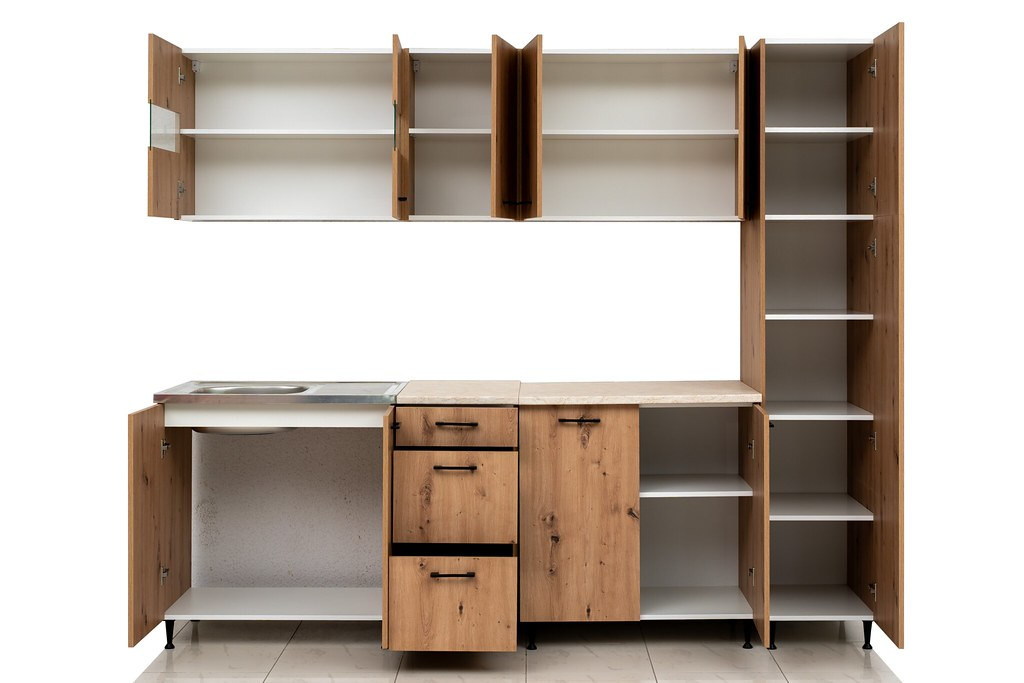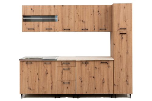 Anikó konyhabútor – 240 cm-es blokk konyhabútor nem lapraszerelt kivitelben, mosogatótálcával és szifonnal
