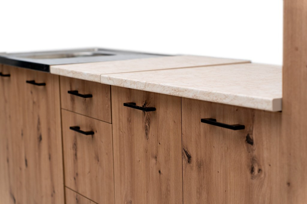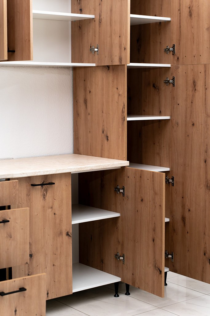 A 240 cm széles Anikó blokk konyhabútor ideális választás mindazok számára, akik tágas, jól felszerelt és nem lapraszerelt konyhabútort keresnek gyors szállítással és kedvező áron. A konyhabútor teljes értékű, előre összeszerelt állapotban kerül kiszállításra, így a vásárlónak nem kell bajlódnia az összeszereléssel – csak a fogantyúk és a lábak felszereléséről kell gondoskodni, amelyekhez az előfúrt helyek már adottak.