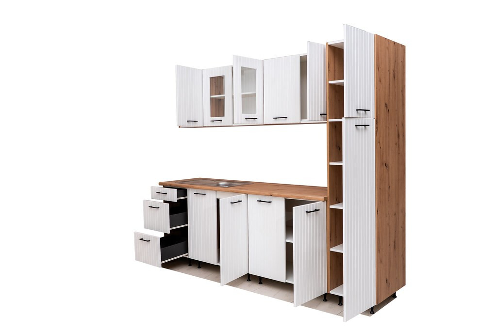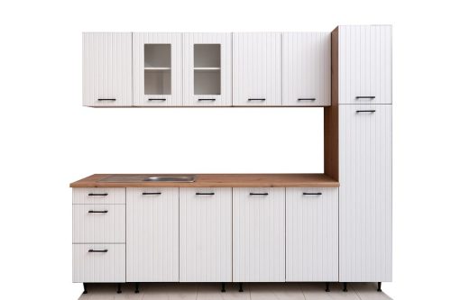 Gréta konyhabútor – 240 cm-es blokk konyhabútor mosogatótálcával és szifonnal