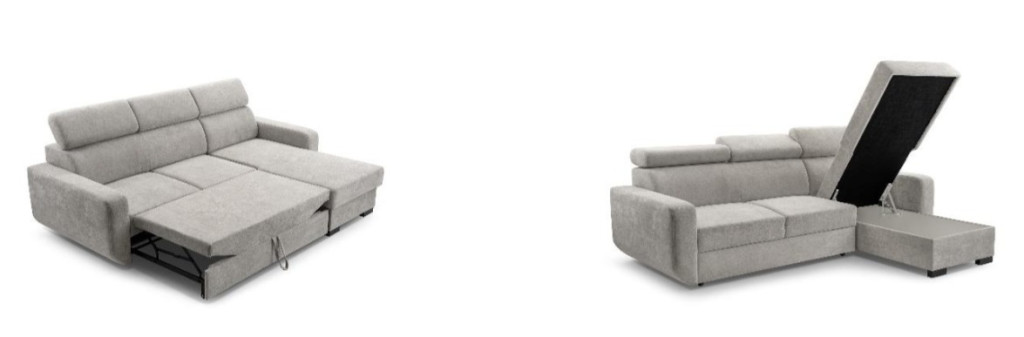 A sarokkanapé ágyfunkcióval rendelkezik, amely a könnyen kezelhető automatikus mechanikának köszönhetően gyorsan és stabilan nyitható. A beépített ágyneműtartó praktikus megoldás a takarók és párnák számára, így az Imperio sarokgarnitúra nappaliba és vendégszobába egyaránt ideális.